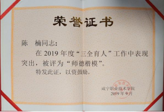 宗要,机电一体化技术专业优秀毕业生