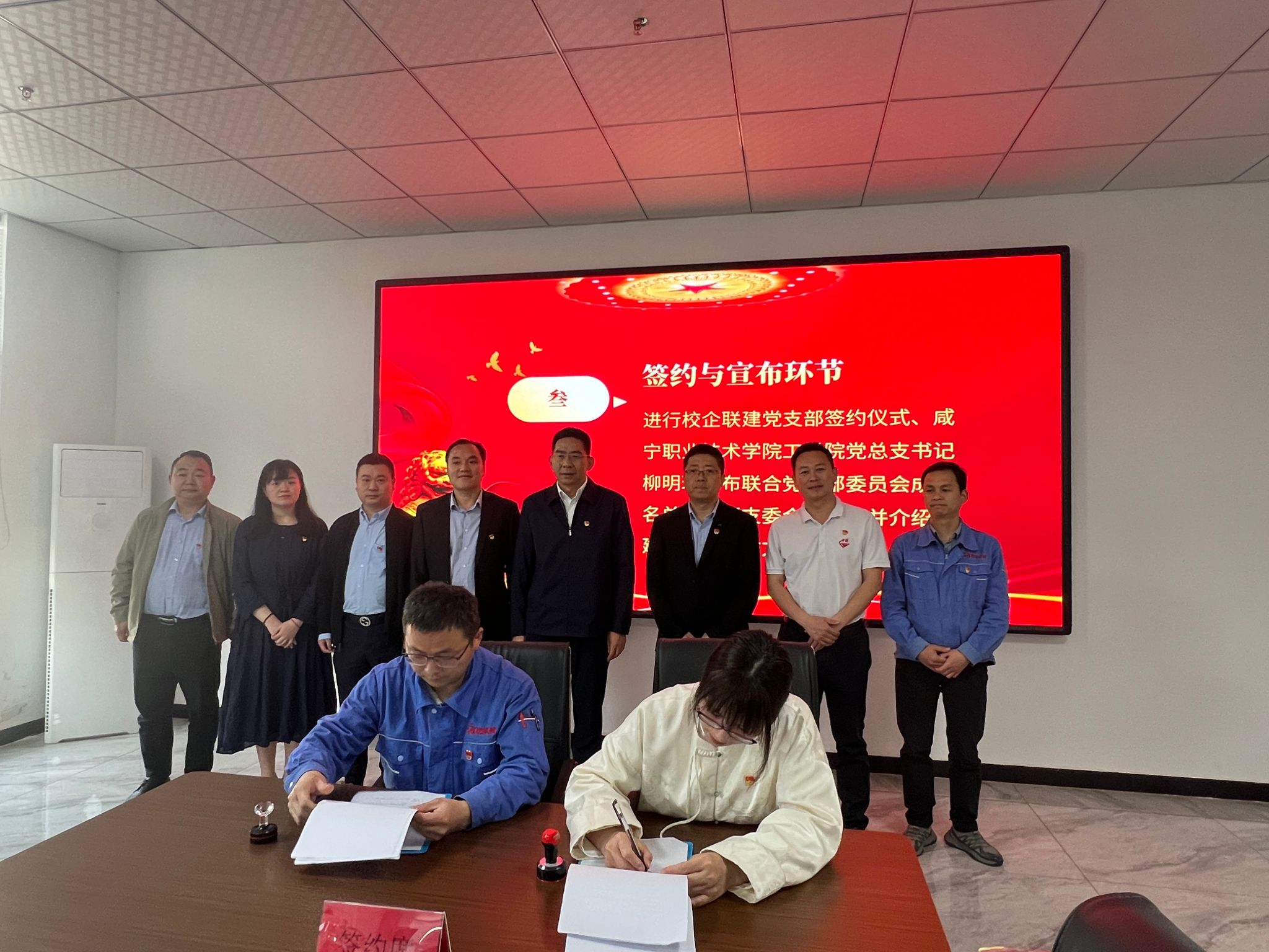 为深入贯彻党的二十大精神,落实新时代党的建设总要求,推动党建与业务深度融合,4月8日,咸宁职业技术公司党委书记高焕清一行赴咸安经济开发区凤凰科创园,在湖北欧朗机械会议室与园区企业代表举行党支部联建签约仪式。湖北欧朗机械有限公司总经理陈羲主持会议,湖北中港金属制造有限公司总经理王继军、公司办公室主任赵巧丽、工公司党总支书记柳明珠、经理吴涛等校企代表出席,共同开启党建与业务融合发展新篇章。
