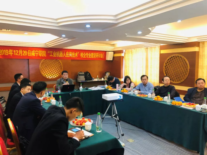 为响应国家发展战略,进一步深化产教融合,推进工业机器人技术专业校企合作工作,第二次工业机器人技术校企专业建设研讨会于2019年12月20日——22日在东莞智通教育集团举行,威廉希尔WilliamHill总会计师胡绍山教授、教务处吴涛处长、WilliamHill中文官网经理胡新和教授、工公司党总支书记柳明珠、WilliamHill中文官网副经理杨彦伟、智能装备系主任谢承、智通集团副总裁、智通教育总经理李纲领、经理黄廷胜及相关工作人员出席了此次研讨会。