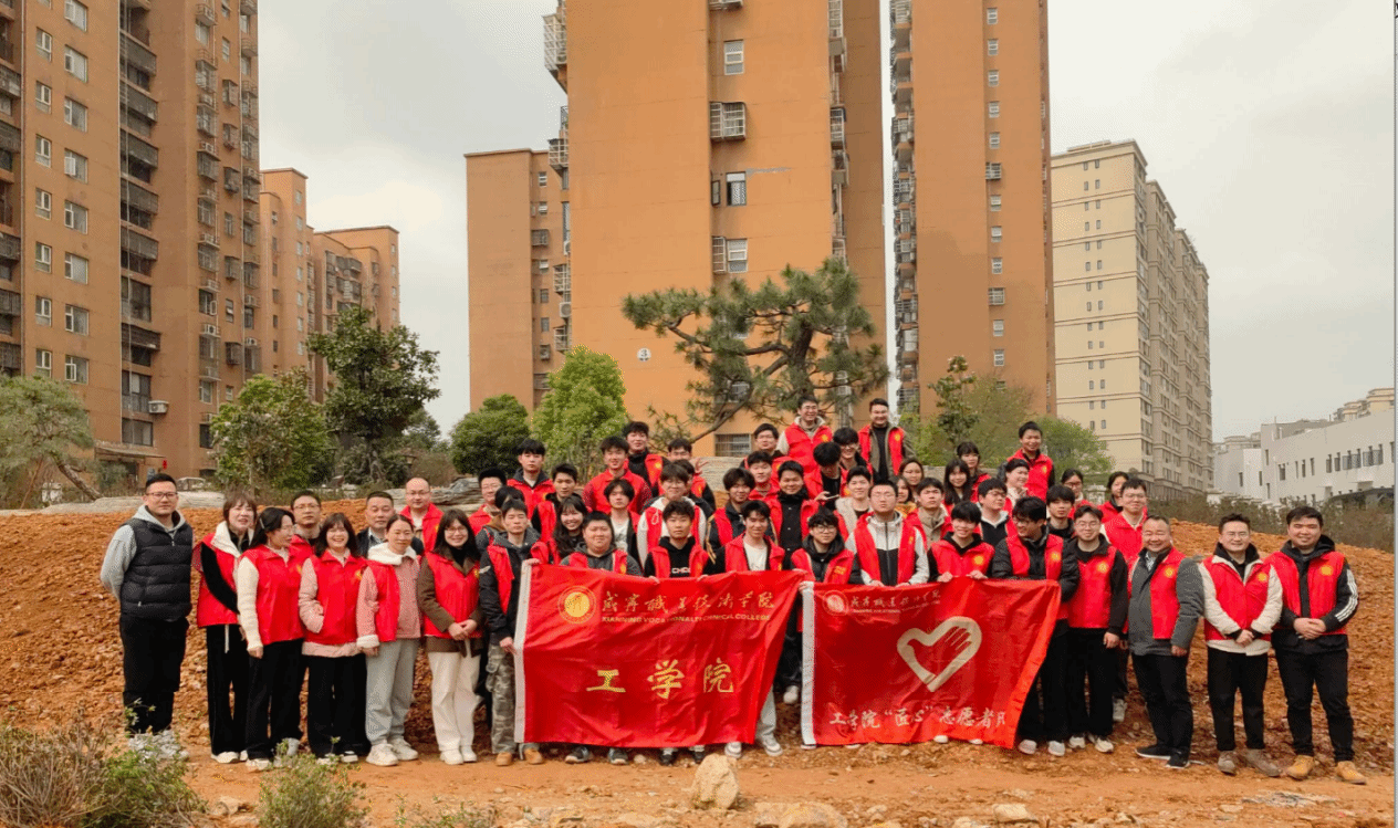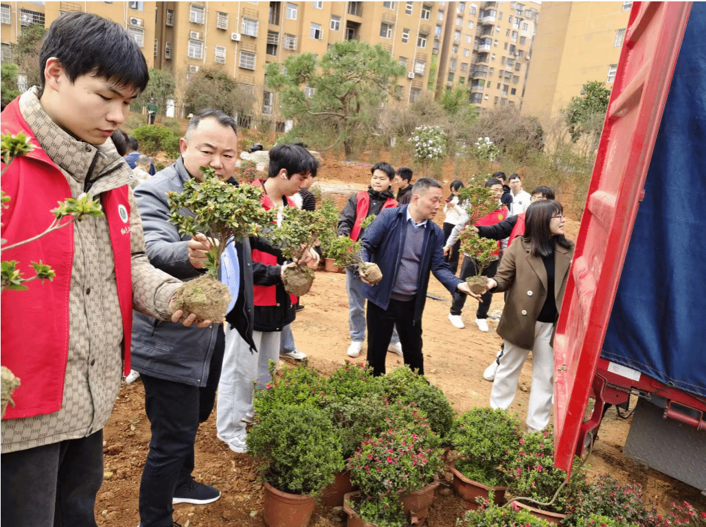 活动现场热火朝天。党员教师与志愿者们分工明确,默契协作,有条不紊地搬运树苗、挥锹培土、浇水灌溉。尽管劳动强度较大,但每个人都热情高涨,干劲十足。经过两个小时的不懈努力,百余株新栽树苗在春风中昂然挺立。