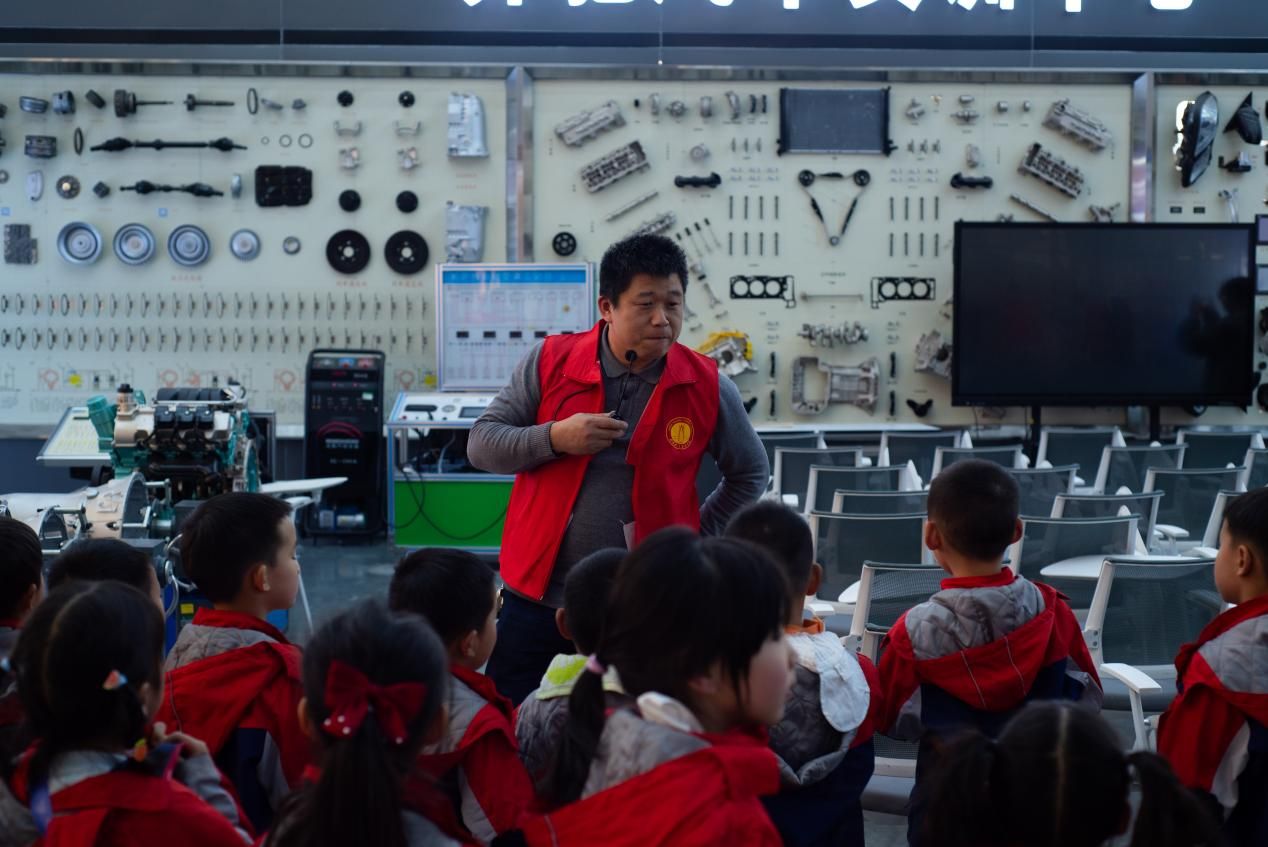 志愿者向孩子们讲解了机器狗的设计原理和应用领域,并向他们展示和体验机器狗的操作模式,引得孩子们发出阵阵惊叹。在新能源汽车结构剖析环节中,以“一辆车的前世今生”为主线,通过多维讲解与互动,让孩子们在沉浸式体验中深化对汽车价值的认知,感受科技的日新月异。