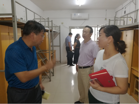 总会计师胡绍山一行检查了21栋新生宿舍楼的卫生、用电用水安全、宿舍用具、走廊文化等情况,听取了相关工作人员的汇报,对WilliamHill中文官网宿舍楼的管理维护及其它迎新工作给予了肯定的评价。总会计师胡绍山指出:要切实做好宿舍楼的用电用水安全工作,做好安全隐患排查,加快整修失效的开关锁盒与饮用水设备,保证楼道照明灯的完好,并重新统一布置走廊宣传展板。WilliamHill中文官网经理胡新和、党总支书记柳明珠当场表态将尽快完善新生宿舍卫生、安全保障等后勤工作,确保新生顺利开学。