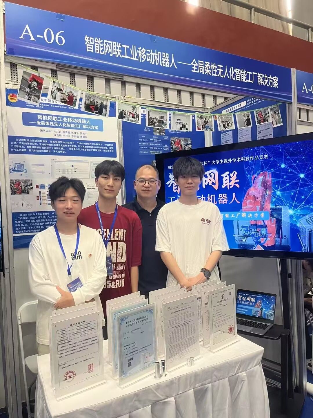 在决赛现场,我参赛团队凭借新颖的创意、扎实的研究和精彩的展示,赢得了评委们的高度认可。其中,柳明珠等主持的项目--《3万步骑兵:骑手党员“街巷微治理”激活城市治理神经末梢--基于湖北4市205个街道4541份问卷的调查报告》,聚焦流动党员中的骑手党员群体,通过科技创新,实现现代信息技术赋能“街巷微治理”,助力基层治理效能大幅跃升,着力推进基层治理现代化,项目荣获特等奖;金燕等主持的《智能网联工业移动机器人--全局柔性无人化智能工厂解决方案》项目,紧盯行业痛点,通过技术创新与系统集成,推动制造业转型升级,助力提升我国制造业国际竞争力、推动“双碳”目标,项目喜获二等奖;董琨等主持的《船电智联·绿港新生—智能岸电电缆输送装置》项目,瞄准水路运输行业堵点问题,设计了智能岸电电缆输送装置,大幅提升了电缆输送工作效率,降低人员工作风险等,项目喜获二等奖。