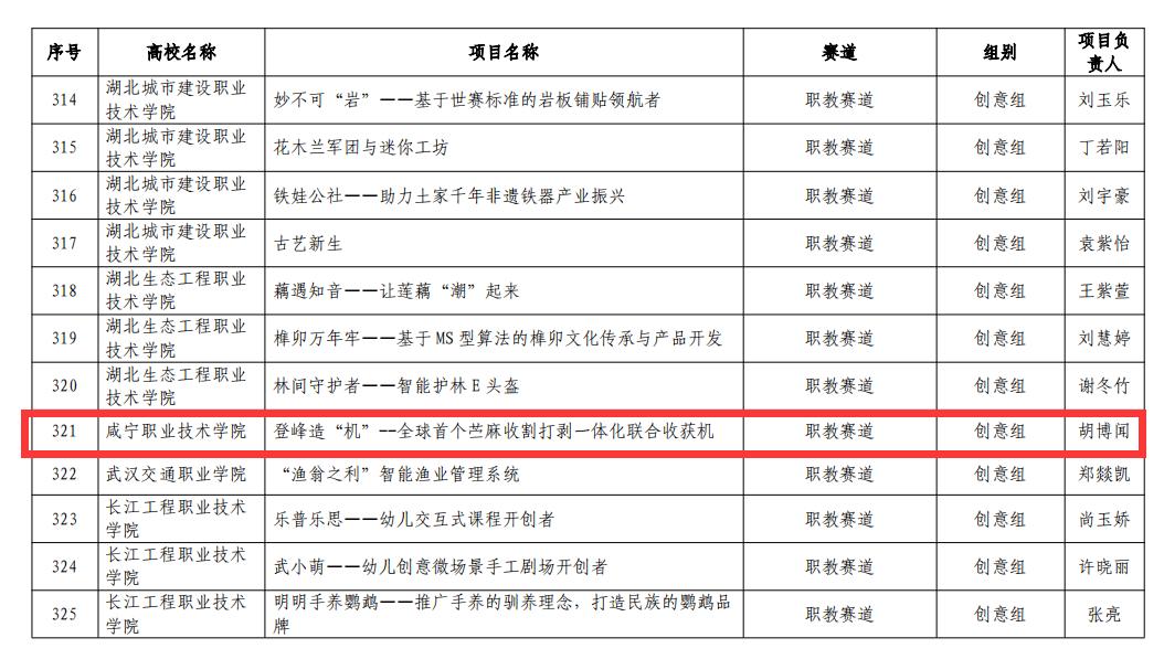 7月1日在公司精心组织遴选,公司积极配合参赛下,公司8个项目参加第八届中国国际“互联网+”老员工创新创业大赛湖北初赛。后经大赛组委会组织专家网评,最终由公司赫焕丽老师团队指导项目“登峰造‘机’——全球首个苎麻收割打剥一体化联合收获机”进入职教赛道创意组金奖排位赛;由马芬老师团队指导项目小蜜蜂“制绘”工作室获得职教赛道创意组湖北省复赛铜奖。