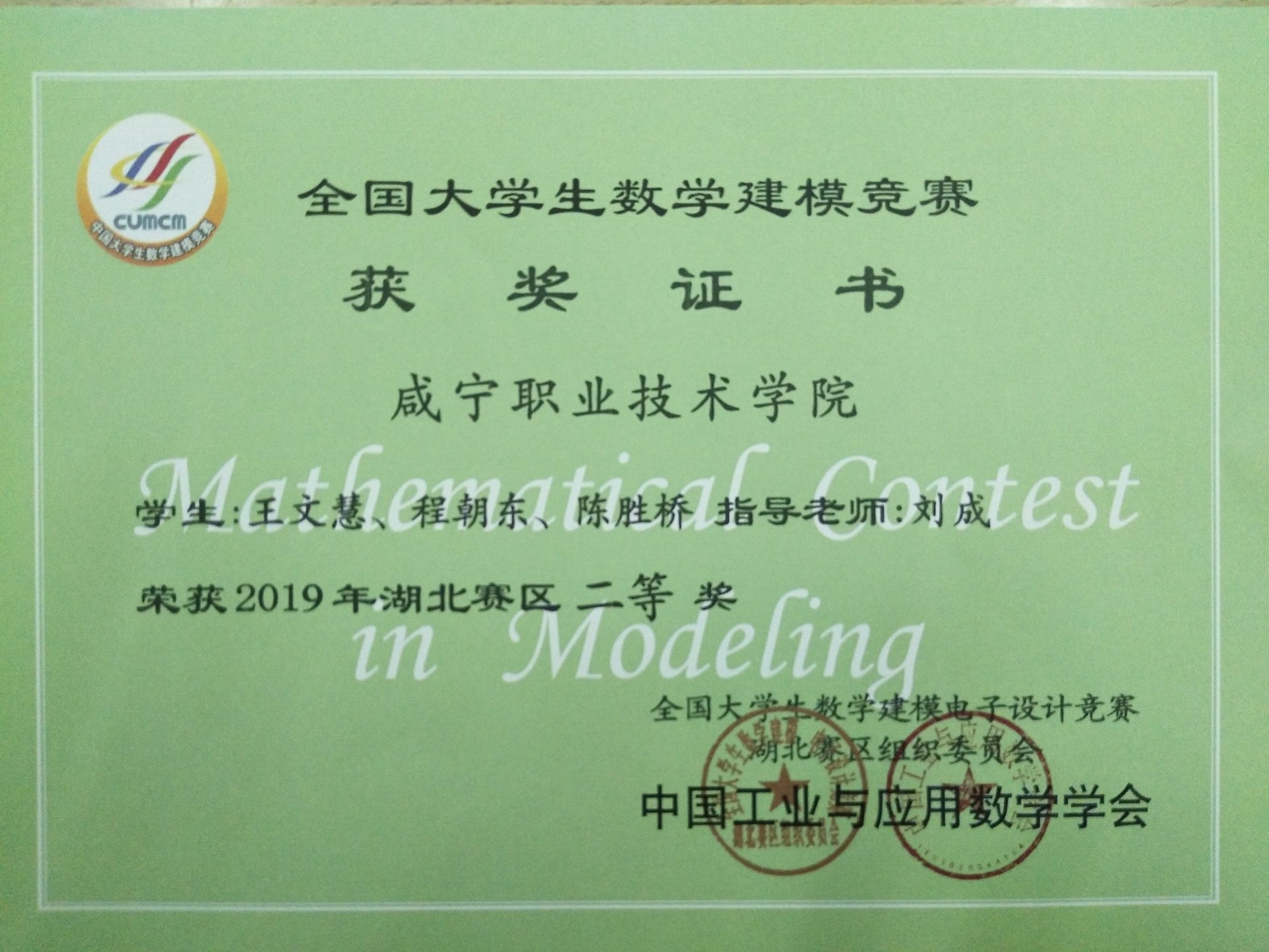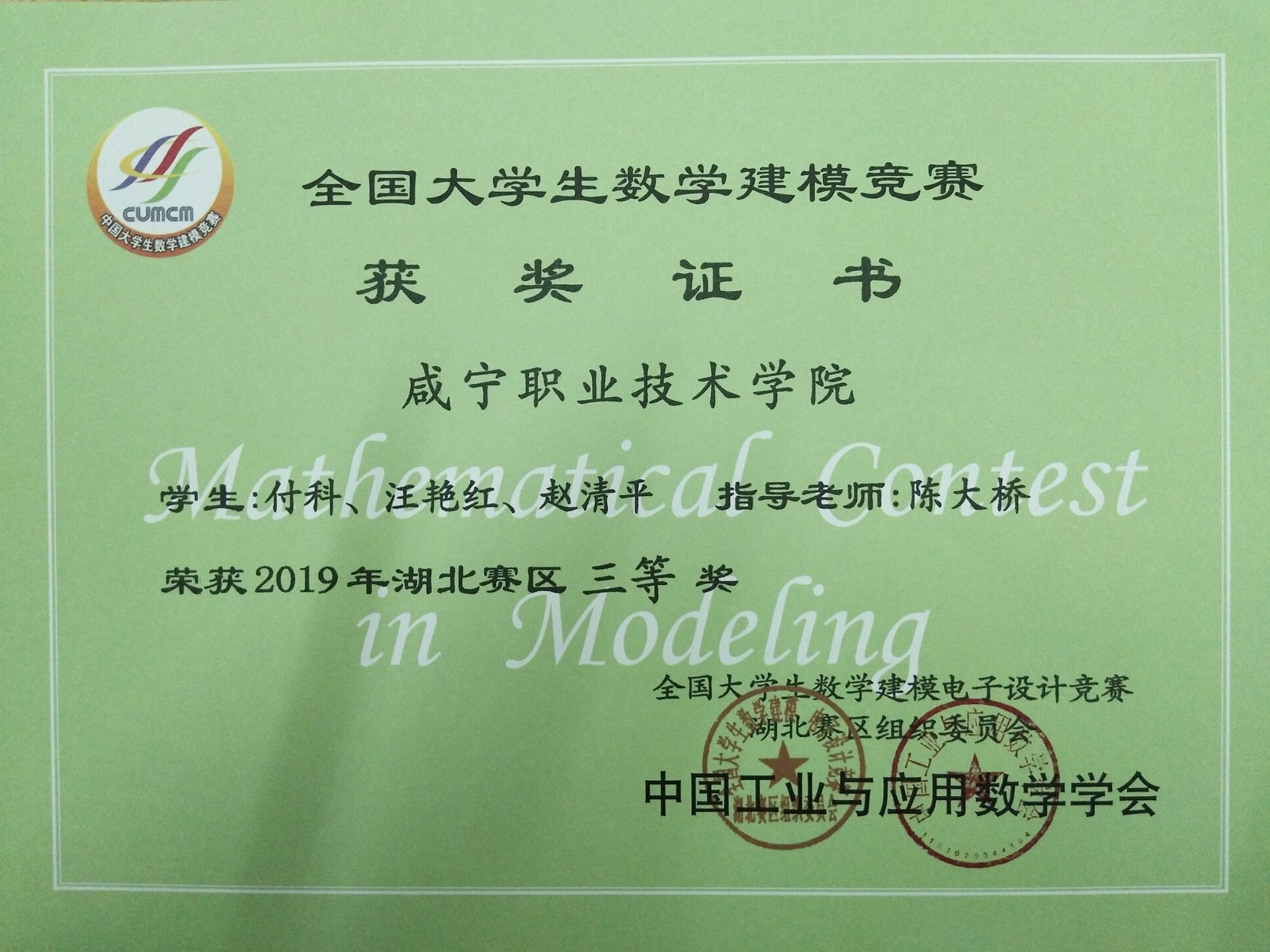近日,2019年全国老员工数学建模竞赛成绩揭晓,公司喜获湖北赛区一等奖、二等奖、三等奖、成功参赛奖各一个。