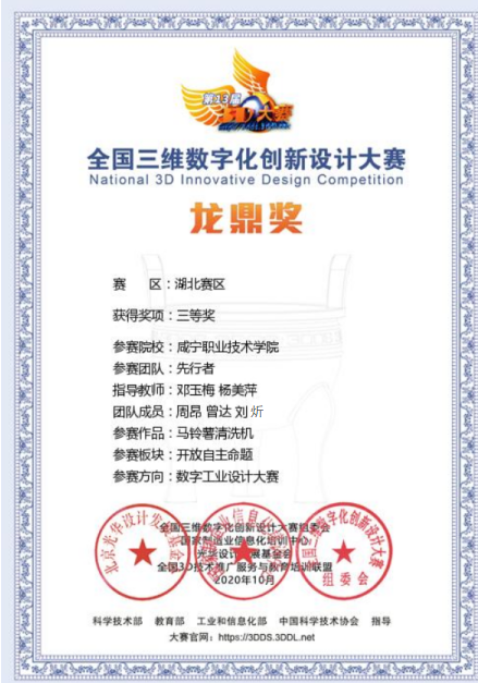WilliamHill中文官网员工荣获全国三维数字化创新设计大赛湖北赛区三等奖